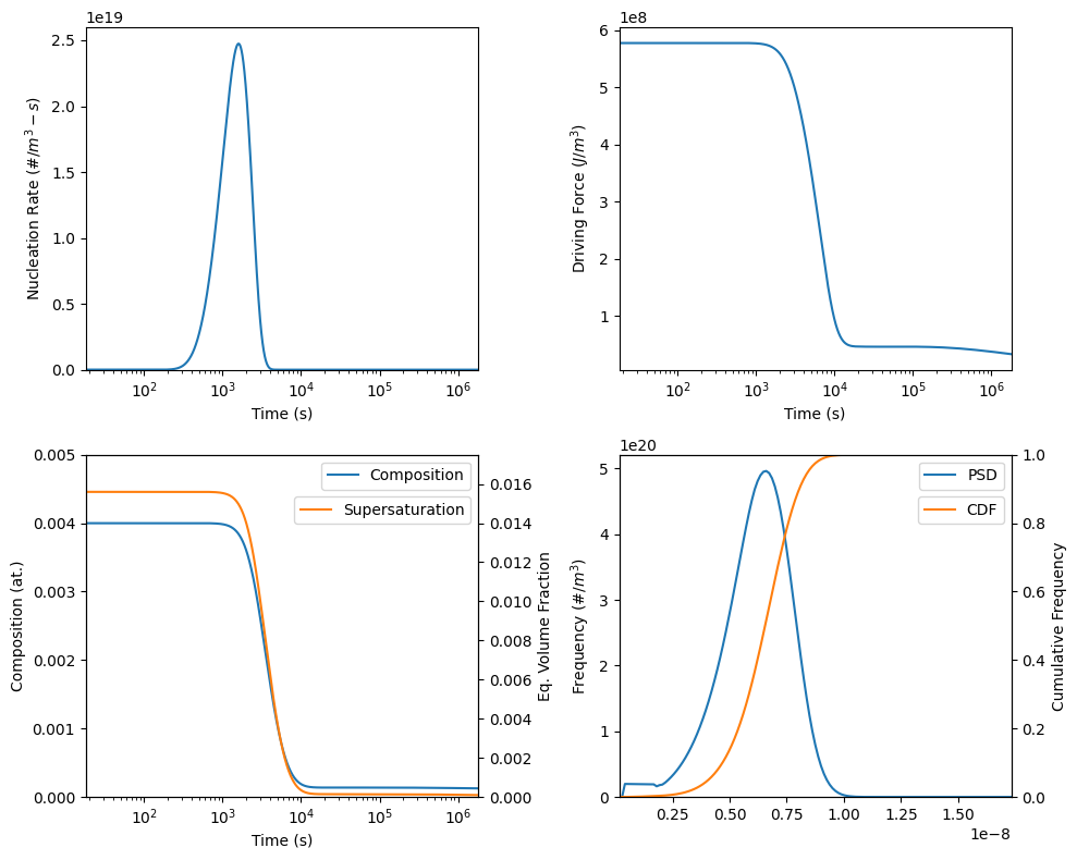 47 from kawin.precipitation.Plot import plotNucleationRate, plotDrivingForce, plotComposition, plotSupersaturation, plotSizeDistribution, plotCumulativeDistribution