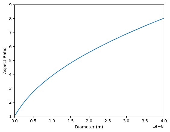 134 #Plot diameter vs. aspect ratio