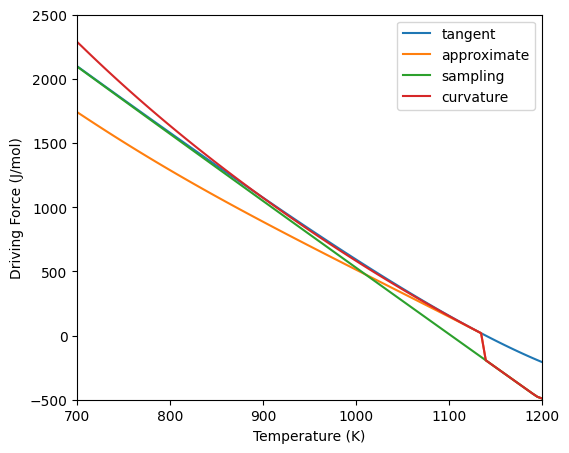 Four different methods are available for driving force calculations: tangent, approximate, sampling and curvature.